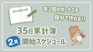 年2回のボーナスが自分で作れる「35日家計簿」。ボーナスが作れる秘訣は、スケジュール通りに家計簿を続けるだけ。今回は、2026年1月の給料で2月から35日家計簿を始めるのに、おすすめのスケジュールをご紹介します。Youtube今回のブログの...