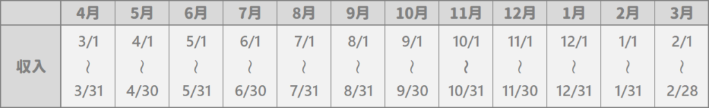 5月のやりくりでは、4/1~30に受け取った収入を使用…